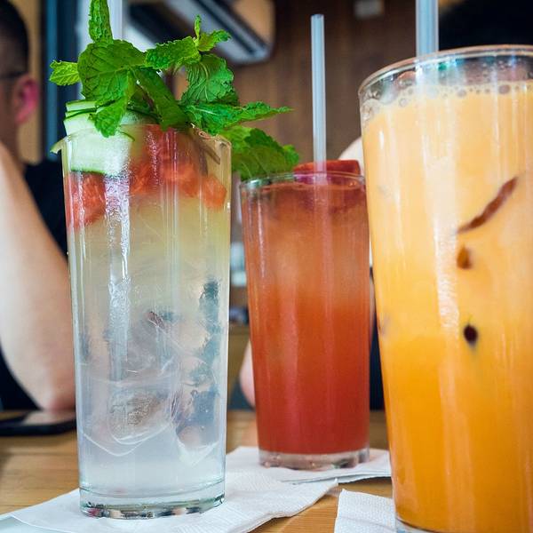 - 感觉还不错,这里的冰淇淋果茶味道相当的好,而且价格便宜,图中的两杯,才80泰铢一杯,满满的一大...