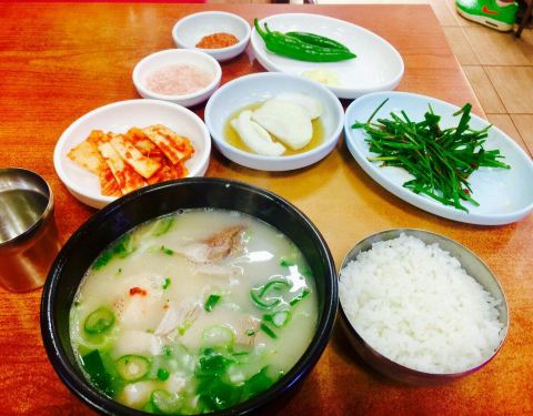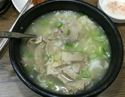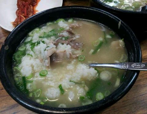 有人和我说韩国人吃东西大多数情况都是很简单的!泡菜汤拌饭就能吃的很欢快,到了韩国确实有看见这样的情况,叫我们这样吃我们就受不了了。 肉汤饭的最主要我觉得是肉汤,鲜味都在里面,带着米饭也更香更好吃了!汤有好几个味道的,按自己喜欢的点吧!