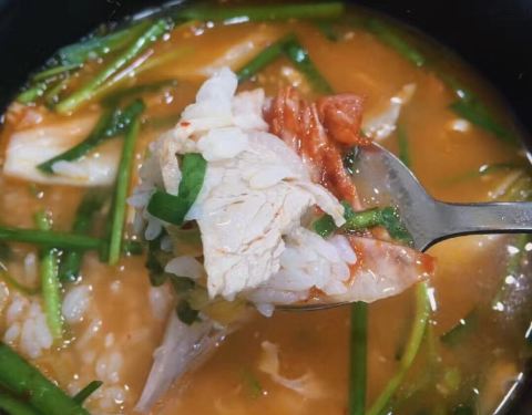韩国的汤饭其实主要是冬天的主要吃法,也比较的冷,猪肉烫饭还不错,没有猪肉的那种腥味,里面还有菜,有点类似上海这里的菜泡饭。