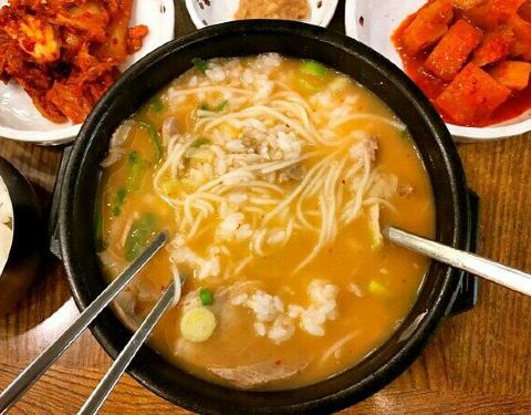 有人和我说韩国人吃东西大多数情况都是很简单的!泡菜汤拌饭就能吃的很欢快,到了韩国确实有看见这样的情况,叫我们这样吃我们就受不了了。 肉汤饭的最主要我觉得是肉汤,鲜味都在里面,带着米饭也更香更好吃...有人和我说韩国人吃东西大多数情况都是很简单的!泡菜汤拌饭就能吃的很欢快,到了韩国确实有看见这样的情况,叫我们这样吃我们就受不了了。 肉汤饭的最主要我觉得是肉汤,鲜味都在里面,带着米饭也更香更好吃了!汤有好几个味道的,按自己喜欢的点吧!
