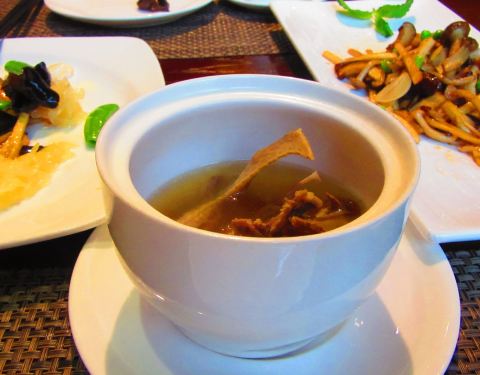 御膳苑设在华清宫景区里面,夜晚看长恨歌演出的游客选择在这里晚餐是最理想不过了,距演出广场大约300米。餐厅装饰简单清雅、环境宽敞,服务员彬彬有礼,内有包厢,大厅配有二人、三人、四人桌,可以散点菜品,价格可以接受,量比较少,摆盘精致口味不错,菌菇类菜品丰富新鲜。相比其他景区餐厅还算实惠的,御膳苑周边外景超美,犹如江南园林,是游客餐前餐后逗留的好地方。