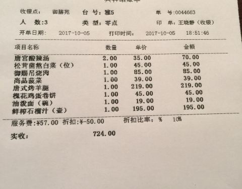 华清御汤酒店的配套饭店,也是华清宫里唯一的饭店,风格与华清宫建筑一致,古色古香,旺季一定要提前预订,不然需要等位。这里的出品十分精致,可以体验到精致的陕西菜,味道也不错,就是价格偏贵一点。住客有折...华清御汤酒店的配套饭店,也是华清宫里唯一的饭店,风格与华清宫建筑一致,古色古香,旺季一定要提前预订,不然需要等位。这里的出品十分精致,可以体验到精致的陕西菜,味道也不错,就是价格偏贵一点。住客有折扣,相当于免服务费吧。 PS在御膳苑对面的套房是酒店的一号套房,整个院子包下来,一晚过万元,真是皇帝的享受。