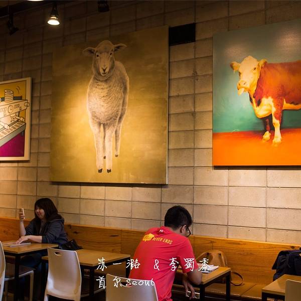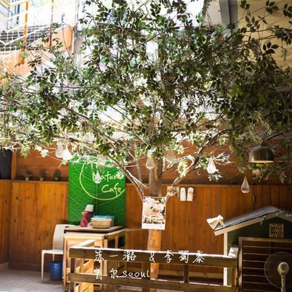这家咖啡厅从名字就能看出其理念,感谢自然,崇尚自然。这家咖啡厅距离弘大非常近,位于地下一层,店里有两只吃得胖胖的小羊,在这里消费的顾客可以跟小羊一起玩哟~店里除了咖啡,招牌甜点是华夫饼。我们在喝咖啡的时候,就能听到小羊“咩~”“咩~”的叫声,完全原生态。店长大叔长得像宫崎骏,他时不时地去打扫羊窝,给小羊喂食。我们准备离开时,店长让我们进去羊窝给小羊喂草吃。小羊的毛非常柔软,让人止不住想去揉呀!