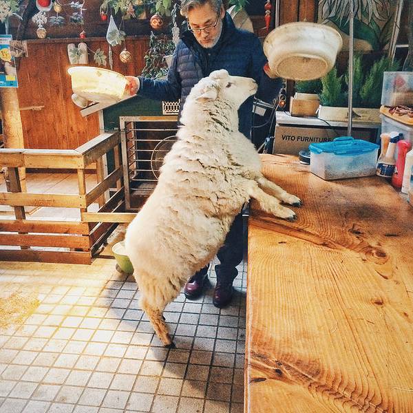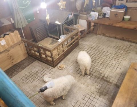 这是一家超治愈的动物咖啡厅。肥嘟嘟的小羊超级软绵,很听话的,羊的毛超级厚,摸着摸着像棉花糖。老板管理的也很好,店里和羊真的一点味道都没有的。