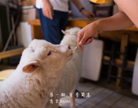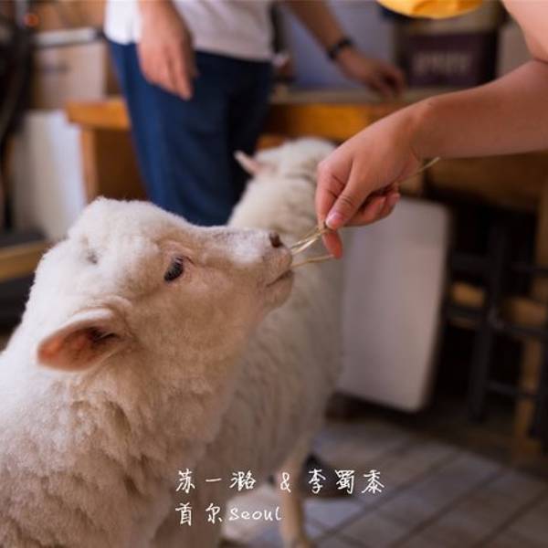弘大附近的Thanks Nature Cafe。这家咖啡厅有两只羊咩咩,在这里消费的顾客可以跟小羊一起玩哟~我们在喝咖啡的时候,就能听到小羊“咩~”“咩~”的叫声,完全原生态。店长大叔长得像宫崎骏,他时不时地去打扫羊窝,给小羊喂食。我们准备离开时,店长让我们进去羊窝给小羊喂草吃。跟小羊互动很有趣~
