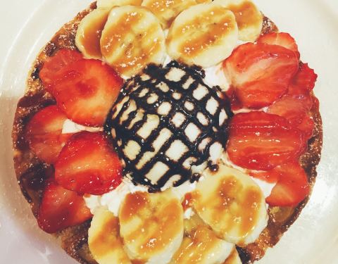 咖啡店环境不错,坐在里面可以看看外面的风景,草莓冰激凌味道不错,茶叶茶味道一般,巧克力华夫饼是先做的