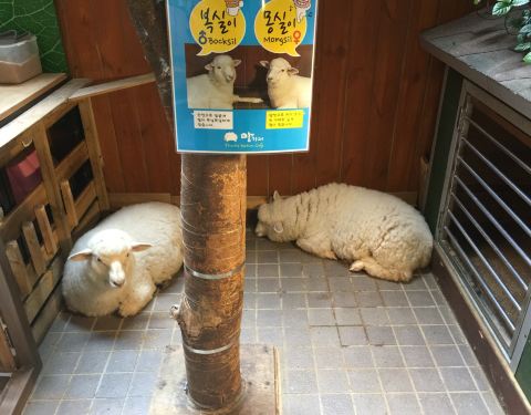 弘大附近的thanks natural cafe,可以在网上地图搜到。咩咩和咖啡店是分开的不过在咖啡店消费才可以进入羊圈。