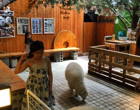 ”的叫声,完全原生态。跟小羊互动很有趣~这家咖啡厅有两只羊咩咩,在这里消费的顾客可以跟小羊一起玩哟