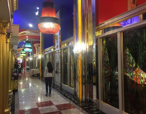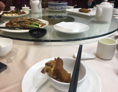 皇室宴会位于广州地铁8号线新港东出口南丰汇的5楼,不得不说,是个很大气很豪华的大饭店,去的时候大厅正在举办婚宴,包间必须提前预定。菜品的摆盘精致,口感也不错。尤其是碳烤猪蹄。
