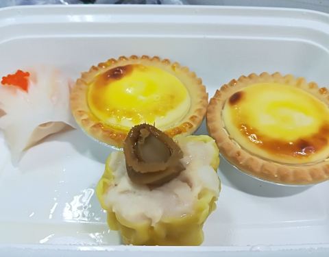 ...参加公司的午茶聚餐,所以大家特地打包了一个点心套餐给我俩,味道中规中矩,中式蒸点比西式点心好吃