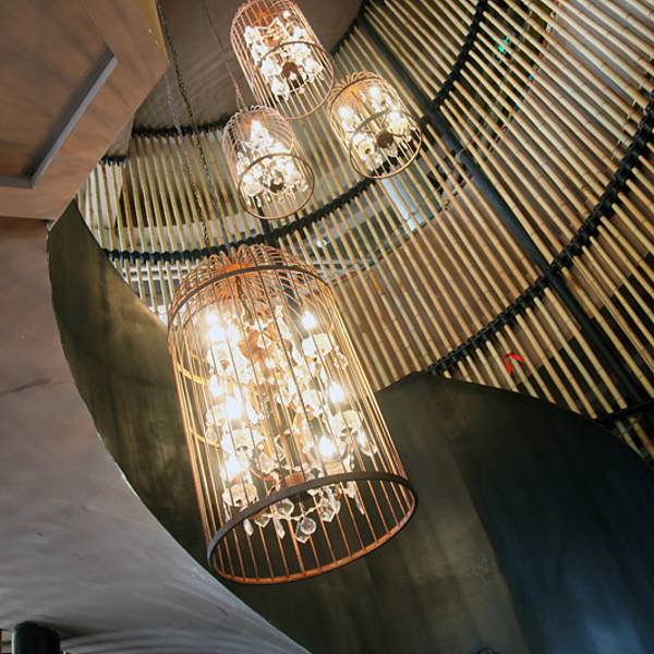 李子坝梁山鸡渝北店环境舒服惨了,装修很特别,一个吃江湖菜的地方你能想象装的是这种酒吧风格?