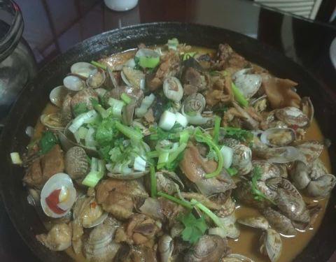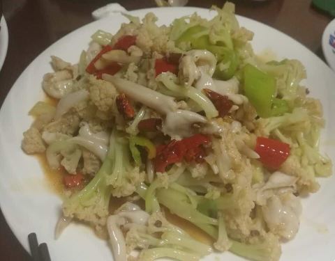 美味佳肴,全吃光光了~鸡焖蛤~有机花菜炝鸟贝~饭扫光~