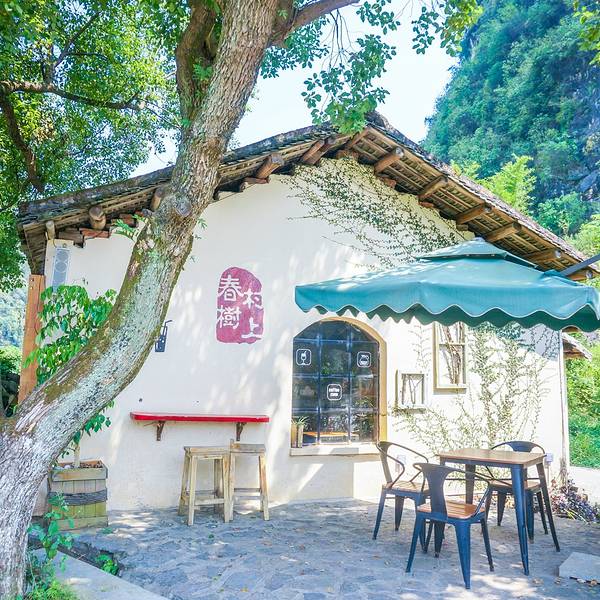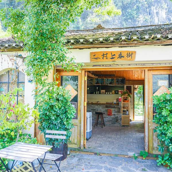 周末习惯过来阳朔度假,而徒步或骑行遇龙河是我喜欢的,这个村上春树的咖啡屋是在骑行遇龙河途中的走到夏棠村口,走到石头桥口,会看到一棵大树下的一个很别致的小房子,就是网红的村上春树,和日本文人的巧合我觉得更是符合这一树一村一屋的景色,喜欢露天的位置,对着石头桥还有竹筏,还有绿色的田野,乡村的味道和清新文雅的咖啡屋丝毫不觉冲突,反而觉得浑然天成。来杯咖啡就好,服务员的服务不算亲切有点懒懒,但来到这里就是放松,只是途中歇歇就好。