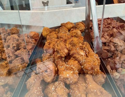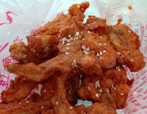 洛阳卖熟食的一家店,连锁经营,遍布大街,全城几十家估计是有了,乘车途中会经常看到,基本一致的店铺装修风格,统一的店员服饰,非常容易辨认。唐宫路店,位于唐宫中路和解放路的十字交叉口,与新都汇购物公园隔路相对,占据一个拐角的橱窗门面设计,配合白底红字的招牌,很招眼的。买了刚出锅的炸鸡叉骨,今天有优惠,买20送10,另外,炸鸡腿块,买20送5,炸鸡腿,10块钱3个,20块钱7个,看着都还蛮有食欲的。还买了一个五香猪耳朵,切好后打包的。临走的时候,看到服务员在勤快地收拾橱窗外部卫生,顿时感觉更加放心。鸡叉骨,嫩嫩的,香香的,口感很好,基本都能吃干净。猪耳朵,新鲜入味,就是偏咸。总体感觉很不错。可以吃吃。