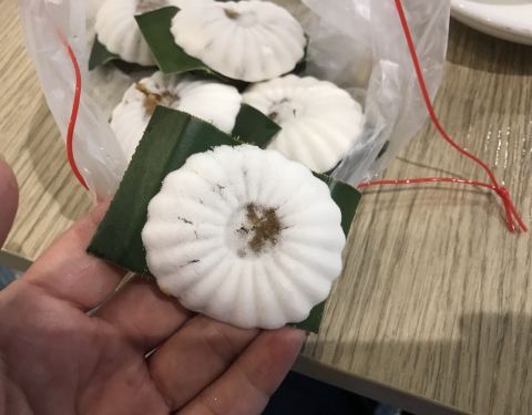 初见是一个咱们国内没有的美食,看牌子很大很诱人就想着尝一尝,一开始没看到实物,问老板可不可以带走回国,她说可以,我还以为是很大的吃食,结果做出来才发现原来那么小一个,基本上一口一个吧,所以实在是太贵啦,有点不太值。但是真的很好吃!尤其是花生口味的~很香,热的时候吃很好吃~还有椰子陷的,花生的最好吃