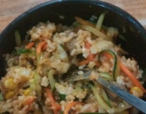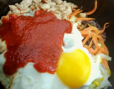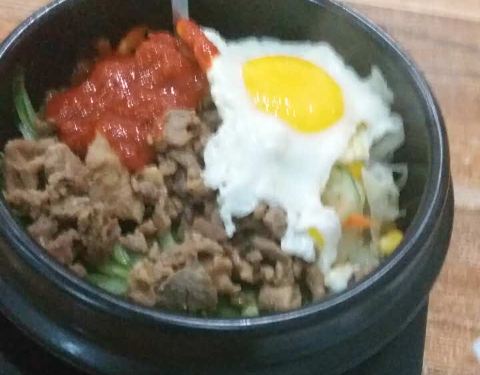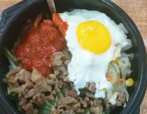 - 图里分别是牛肉拌饭和火腿拌饭,嘻嘻,好吃(*^ω^*)有胡萝卜,黄瓜,荷包蛋,还有偏辣的酱,不错哦