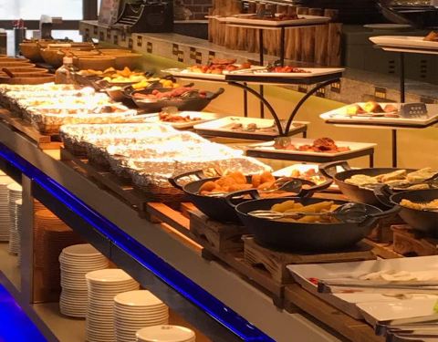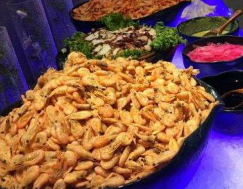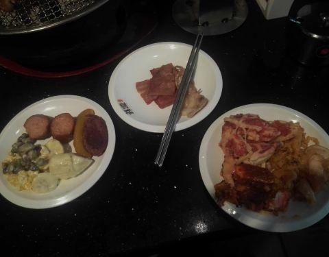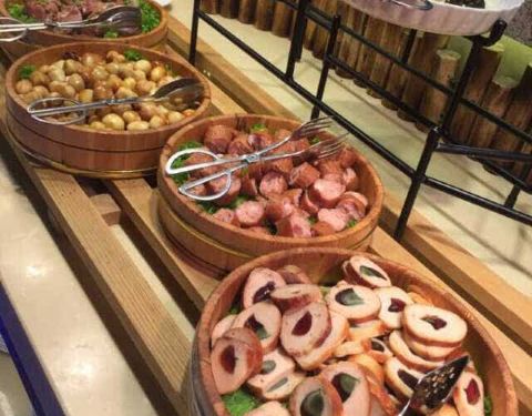 东西很多,尤其是烤肉的肉种众多,海鲜类较少,但是也差不多有10种以上,其他熟食种类更是多样,有日式,生菜沙拉,烧烤,油炸,反正物超所值,值得一去。