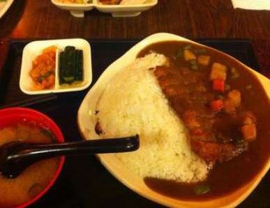 - 也有点认识,可能是混合的菜肴吧,点了一份,咖喱盖浇饭,咖喱很多,可以把饭拌的非常开的是里面鸡肉不多呀