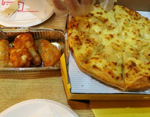 榴莲比萨好好吃,每次都会来光顾这里,宝贝吃的好開心,配上鸡米花和飲料太过瘾
