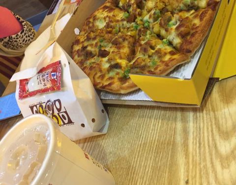 - 今天加班到现在过来吃个pizza再回去他们家比较实惠,口感不错哦喜欢pizza的小伙伴可是尝尝