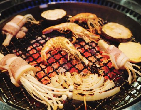 和牛牛排细嫩多汁,霜降猪颈肉越嚼越香,孜然鱿鱼脆弹可口、台式香肠肉香满满,最爱盐烤大虾,超级入味好吃