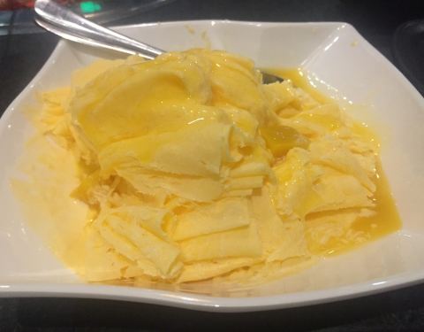 - 烤肉拼盘里的东西不是很多,加了很多次牛五花和牛舌,淡奶布丁是加的次数最多的。芒果绵绵冰不如以前了
