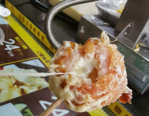 不过一般都是打包边走边吃的,我们是点了一份芝士的丸子,口感非常好,远远比小丸子好吃多了