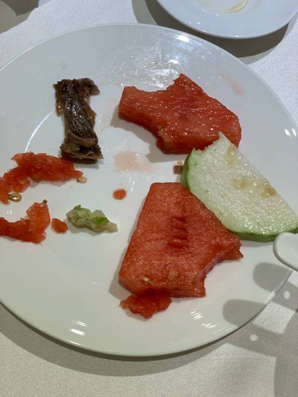 菜是坏 惺味十足! 也坚持绝不退!送的西瓜🍉还是廉价劣质的催熟瓜 到底是谁骗我来吃! 招牌菜是什么 !问了3个人 服务员 没有人可以告诉我 第三个 犹豫了几分钟才开始给我胡诌(男的) 🐟珍珠斑 吃到一...