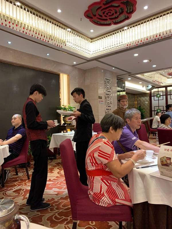 奔著美食林榜單来的,幸好来的比较早不需要等位,不然当天赶飞机堪忧了,因为上菜速度也是比较令人捉急的。 【环境】 大厅少于五人是不能提前在网上预约的。幸好小桌子也比较多。大厅的座位摆法和装潢都比较有年代感,一种好吃老店的气质哈哈。 【服务】 服务还是比较贴心的,桌侧随时都能叫到服务生,加水也很及时。除了上菜有点没道理的慢,蒸菜煲类都上了,炒菜还上不来是有点说不过去了。 【菜品】 两个汤都很好吃,花胶自带香嫩滑爽很可口。碎牛肉蒸豆腐滑嫩入味。老饭店也能做出味道不错的新菜式,值得赞赏。 【交通】 打车当然是最方便,但如果是公共交通的话,可以选择做APM线到海心沙站下,这样子可以顺便先观赏一下广州塔,然后步行10分钟左右就能到餐厅了。