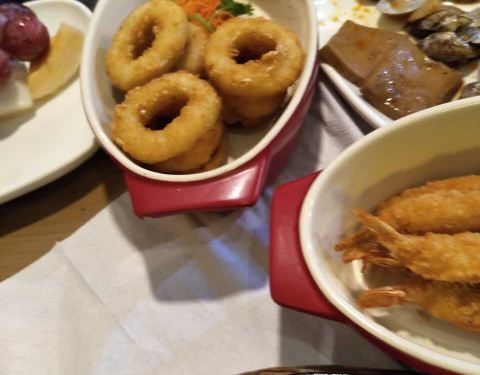 味道还不错,章鱼丸子很好吃。饮料不是很好喝,水果种类不是很多,总得来说还行