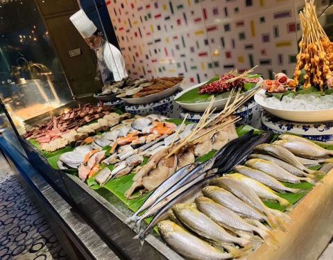 五星级酒店的自助餐十分丰盛, 价格高了一点