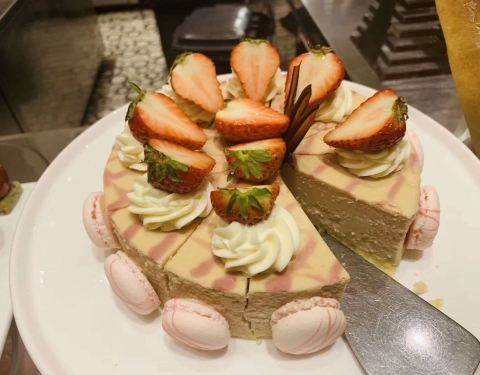 很多人会因为一道菜而爱上一家餐厅,我却因为他家的甜点漂亮而喜欢来这里:诚品斜对面的凯悦。优雅的环境,高格调的餐厅,漂亮的甜点,甜甜的味道,浪漫的气息,择一靠窗座位而坐,看那来来往往的人儿便是一道靓丽的风景。 此外,凯悦的西餐和烧烤也很有特色。西餐的色香味俱全,烧烤则胜在服务,在入座时,服务员会告诉每个人桌号,点烧烤(仅限扇贝、牛排类)时,只需跟服务员说即可,烤好会主动送到座位上,但切记要说清楚口味,否则会默认他们的口味。另一种烤串类烧烤,需要自己前去点单与拿取。 ps:晚餐时,冷餐会再多份4种,烧烤也是,但晚上价格相对高出100左右。