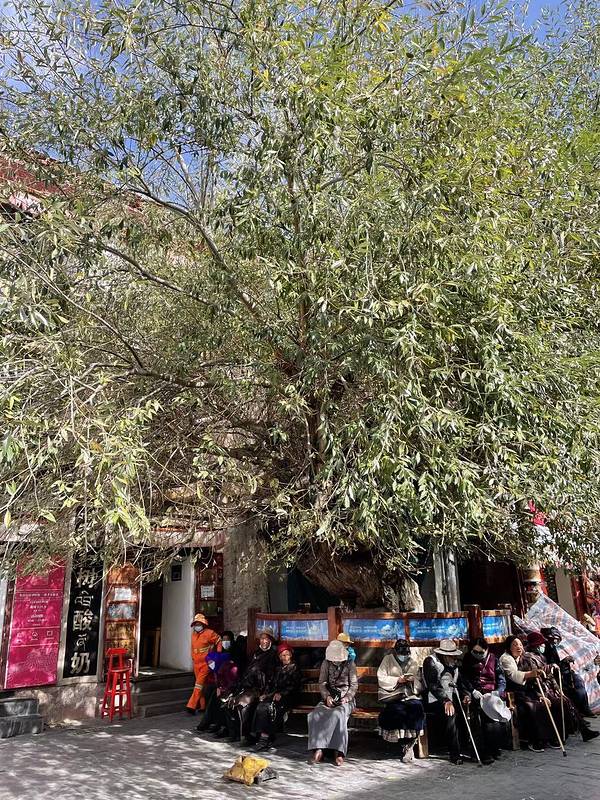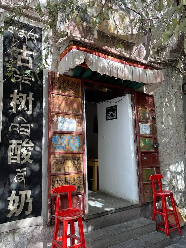 这是一家位于拉萨大昭寺附近的人气网红酸奶店,在大昭寺外围的八廓街转经道的一棵有故事的古树下,这棵树是目前八廓街里最古老的树,传说是从文成公主种下的公主柳上折下的枝,种下去之后存活下来并长成了现在的样子。