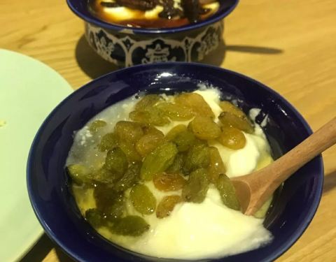 - 点了店里招牌的桂花酸奶和葡萄干酸奶,并不是最贵的,上来一看貌似豆腐脑,但口感是浓浓的奶香味