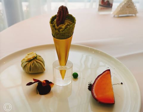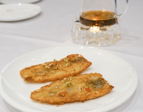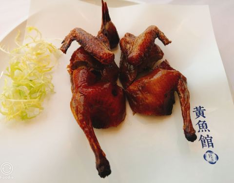 黄鱼馆是以海鲜作为卖点的江浙菜,在上海有两家店,分别位于外滩五号和巨鹿路。 冷菜三拼,石榴包造型可爱迷你,其实是野菜馅的,比较爽口。牛油果色拉手卷做法新颖,翠绿的牛油果泥口感油润细腻,香味独特。果冻状的橙味百香果酸劲十足,最为开胃。 脆皮妙龄鸽,出品不输粤菜餐厅的味道。皮脆油亮,骨酥肉嫩,肉质不肥没有丝毫的油腻感。 家烧东海小海鲜,一道菜就能海鲜吃个爽。贝壳鲜虾章鱼每样三两只,还有新鲜肥美的九肚鱼和鲳鱼。浓香入味,咸鲜嫩滑,令人食之忘俗。分量适中,价格也不贵。其实那个红烧酱汁挺适合拌饭的。 除了家烧做法,油炸的九肚鱼和小黄鱼也相当出彩,一口一个惊艳。 来黄鱼馆怎么能不吃黄鱼呢,招牌黄鱼面刚好是一人食的量,可裹腹但不至于吃撑。 鱼汤呈乳白色,每一口都透着鲜味。鱼肉不腥,是那种一碰就碎的软嫩。店员建议放点紫菜和小虾皮在汤里,我一试,真真切切的鲜至掉眉。 四喜笼,分别是虾饺、带子饺、墨鱼饺以及豆苗饺。虾饺做成小鲤鱼的模样,逼真可爱。 桂花鸡头米放在玻璃碗里显得更加晶莹剔透,糖水甜蜜,鸡头米可以煮得再软糯一些。 鲜果拿破仑叠了三层,奶油细腻清甜,算是中规中矩的味道。 服务周到贴心,整个用餐过程都很愉快哟。