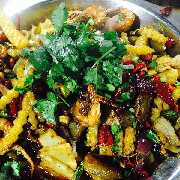 自己选菜 店员几分钟就端着一盆色香味俱全的美食到你面前 好吃 嘿嘿