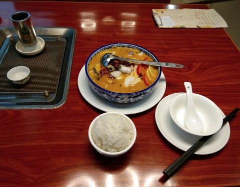 李福记(韶关曲江)――如今餐厅特别时兴茶饭市直落,因为深受大众欢迎,选择更多。特价柠檬番茄酸菜鱼29元,就是多放了两片柠檬和番茄而已,用油煎炸过的骨腩占了一半,叫了微辣居然连花椒都不放,但味道还不错!茶位最便宜5元,幸亏喝水免费!米饭2餐具1。