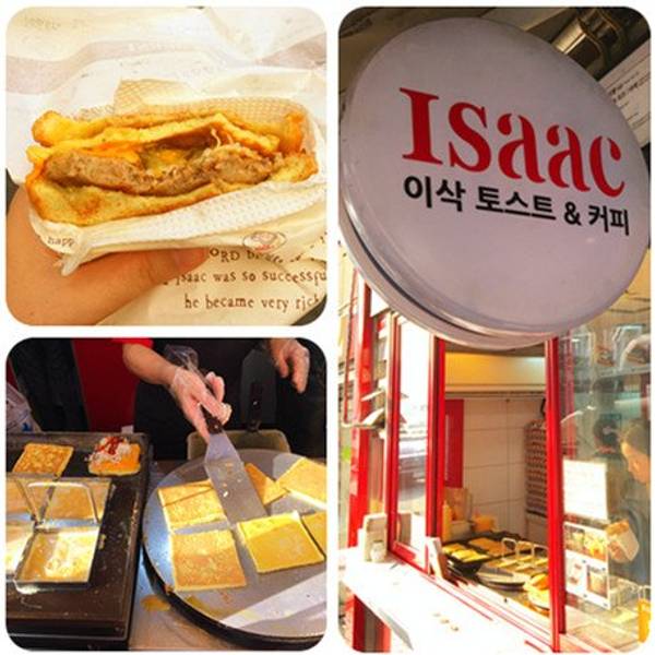 再次回到明洞,找到了原计划当早餐的Isaac三明治做下午茶,自从发现一家Isaac之后,它的招牌总会在不经意间出现。看来这家连锁店铺的生意真的很好。点了最有名气的烤排骨吐司,因为是下午,又是流水作业,所以基...