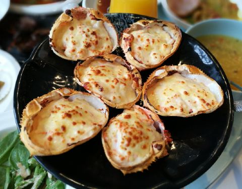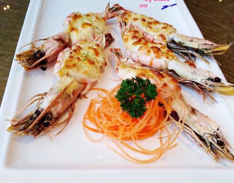 清蒸彩虹斑^鱼肉新鲜美味非常好吃。金牌炭烧猪颈肉^口味独特好吃,肉质很嫩