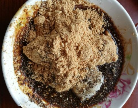 张醪糟,都江堰的小店成了一个美食爱好者的打卡地。 周围的邻居我们问路有两家都说“脏”醪糟,怎么回事不好说,但是走进去看都是游客在这里吃,房子里面的灶台我仔细看确实比较“脏”,老板是该好好打理一下了。 味道其实没有想象的那么好,煮出来也有点稀哇哇的,感觉中规中矩。 旁边的手搓冰粉和青城山腊香肠还不错,骑行一下午渴了饿了吃啥都觉得很爽。