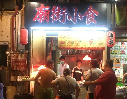 红红火火的招牌、简简单单的布置,却有大量食材,吸引得众多吃客帮衬。庙街小食很市井、很平民