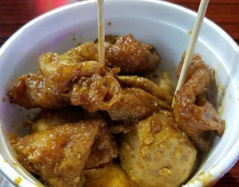 在油麻地附近,类似烧烤串,点了大肠和猪劲肉好吃,主要是酱料好棒!感觉食物本身没什么味道!