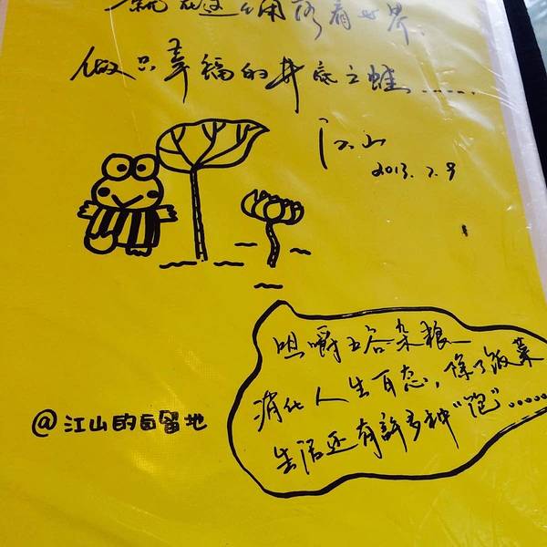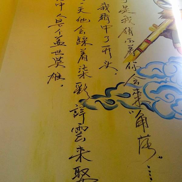 老板是一位青年才俊,写着一手好字,江山角落被装饰的特别有味道,里面有许多经典台词,估计也是个影迷,菜品味道很不错,无论装饰还是菜品口味都符合我和君君的审美,可谓是吃的最开心的一顿,不夸张的说这一顿撑的肚子疼。晚上在大冰的小屋看见老板江山的题字。