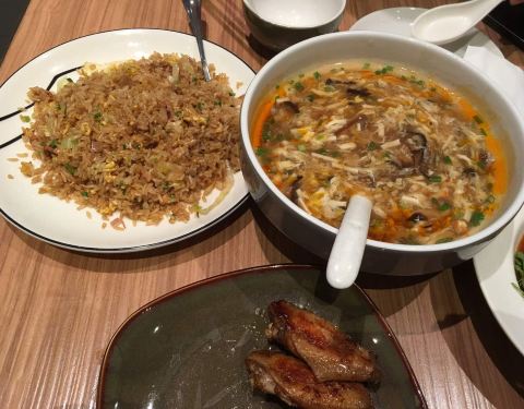 世博源3区2楼,对着中国馆找好找些。人气很旺,每次经过都排长队,不过翻台子速度比楼下避风塘快。特色烧味拼盘:四种拼,脆皮烧肉肥瘦相间但毫无脆皮感,烧鸭色泽红艳但肉质粗老咬不烂,油鸡表皮油润光亮但内里淡而无味,叉烧软嫩多汁且甜蜜芳香,配的梅子酱和黄芥末酱很搭。红烧猪软骨:酱料充分沁入猪软骨内,使肉质染上了好看的酱油色,软骨烧至酥烂,分量十足,底下垫的白萝卜也是吸收了汤汁的味道,非常可口。冰火菠萝油:菠萝包温度不够,导致黄油化不开,外皮也不够酥脆,好在黄油品质还不错。荷叶糯米鸡:打开有荷叶清新的芳香,一散而过。荷叶的香气没能融入糯米,但绵密软糯的口感可以稍微弥补一下缺陷,包裹的鸡肉少了,且改成去骨会更佳。招牌炒出前一丁:略感辱没了“招牌”二字,状态看上去还行,可味道确实不出彩,上桌还是凉的,还好服务生肯拿回去重新热。