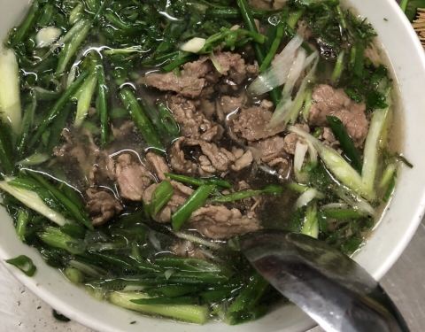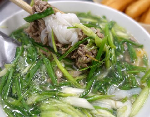还没进门就能闻到香浓的味道,这间只卖猪肉米粉的店,是河内知名美食小店,络绎不绝的顾客里掺杂着本地人和游客。这里的特色是汤头特别香,猪肉很嫩,配上大量的青葱,味道和口感都非常丰富,再叫一碗小油条,一个人吃的刚刚好。