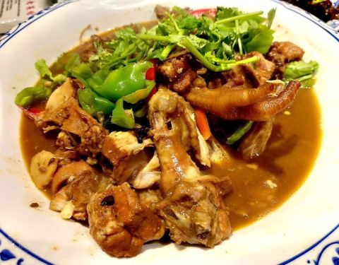 济宁老鲁菜的老品牌,经营很多年了,在当地人来讲,就像是食堂和会客厅。 全部明档点菜,菜的份量是真的很大,大的我们怀疑人生,一份上外地好几份的量。 炖鸡上他们的特色,养了很多年的大公鸡,酱烧炖制而熟,口感有点柴,但是非常入味。 麻辣牛肉,是我的最爱,非常喜欢。
