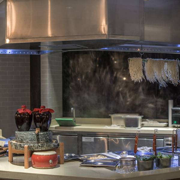 全日餐厅里面除了其他国家、地区料理之外,还有大陆地区不同省市的特色小吃,比如这个就餐厅就有一个江西南昌特色的瓦罐汤,江西的食客们有口福了。当然了,这只是其中一个部分,还有其他主要省份的特色小吃,更多美食可以自己来看一看、品尝一番。我在逛餐厅的时候发现有的餐桌设计的非常人性化,比如可以提供给人数较多的小团体聚餐使用的位置,并且观景效果极佳,可以清清楚楚的看到南京河西地标性建筑物,非常漂亮也非常震撼!对于这样的餐厅,我觉得非常值得去感受也值得向大家推荐。厨师们现场烹饪成为餐厅重要的看点,选择好你想要吃的东西让厨师现场给你做。另外,该餐厅的营业时间是早上6:30开始到上午10:00之间供应早餐,中饭是10:30-13:30之间,晚餐则是从17:00到21:30结束,晚上21:00就停止接单了,一定要注意用餐时间哦。