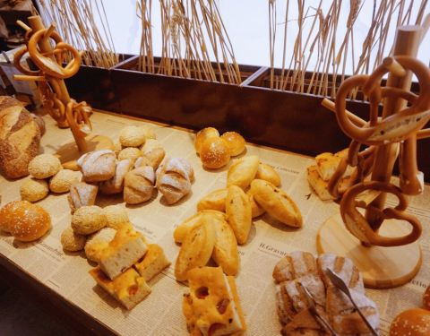 ...,早餐品种有美式、意式、日式、新加坡、中式、韩式、欧式……中式有现煎的鸡蛋饼,法棍切片挺好吃的