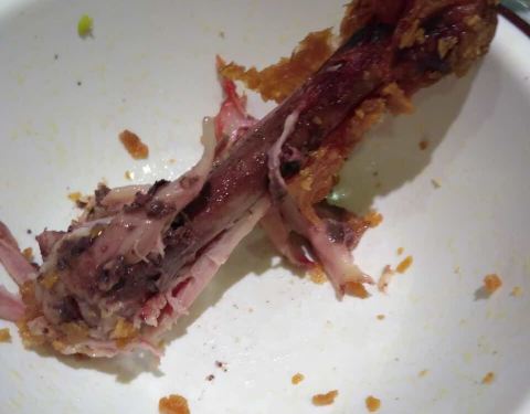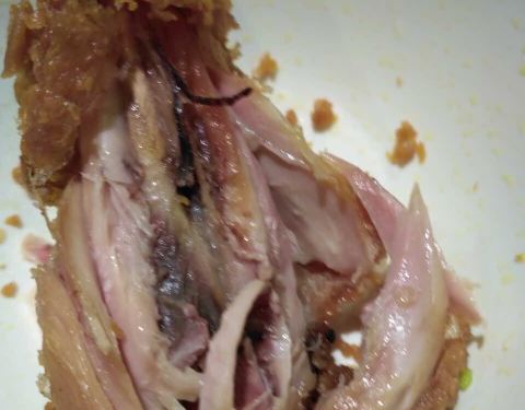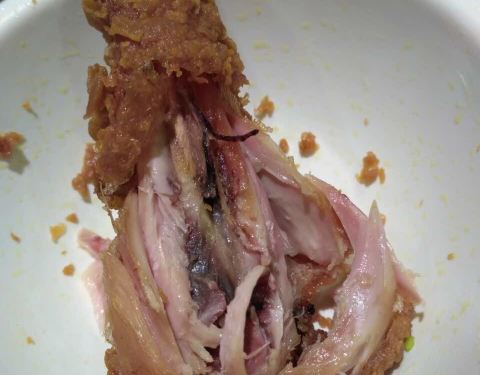 儿童套餐难吃!炸鸡腿面多、厚、硬,所包裹的鸡肉似乎没有熟。