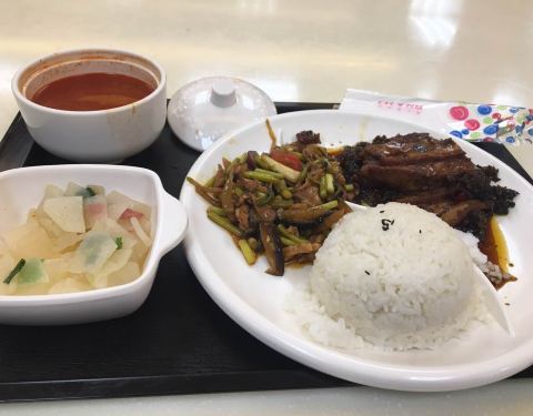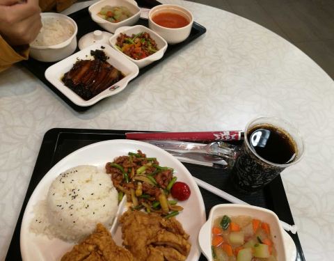 对于吃不了成都得麻辣的游客来说,乡村基是不错的选择,中式的快餐店,分店还不少呢,价格也算中等。套餐性价比不错,点了卤肉饭套餐,一分卤肉饭,搭配两个小菜,还有一分汤,20 元,不错